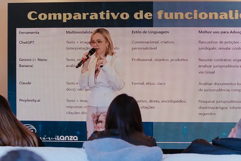 Viviane Lanza é uma das maiores especialistas em Inteligência Artificial aplicada a negócios no Brasil. Com quase 30 anos de experiência em tecnologia, ela traduz o universo da IA de forma simples, prática e acessível para profissionais e equipes
